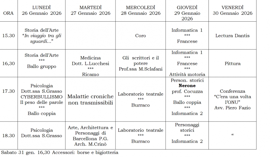 Settimana dal 26 Gennaio 2026